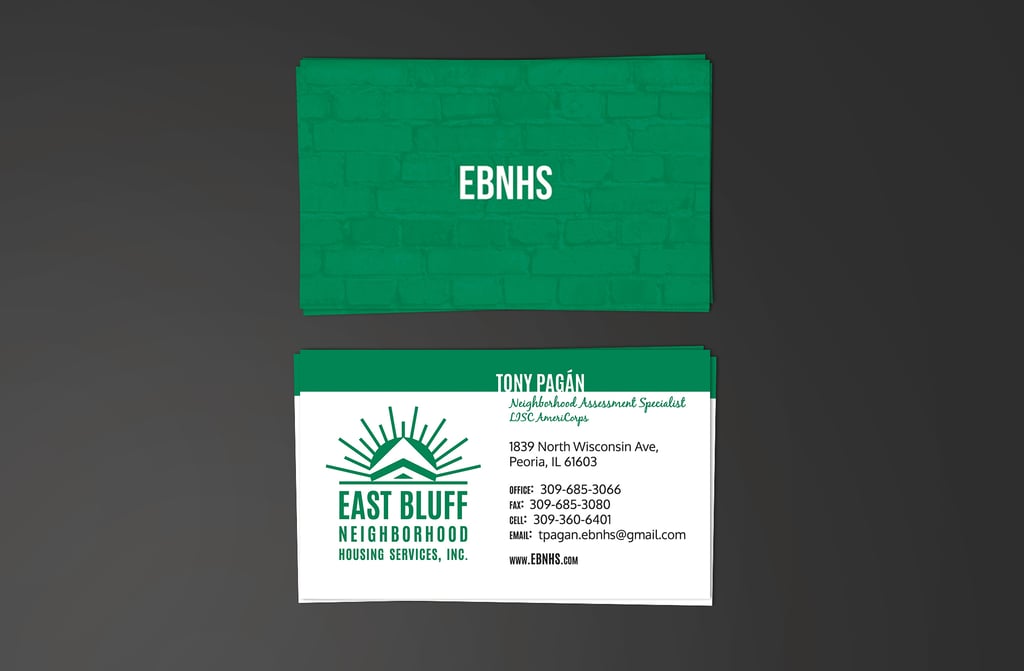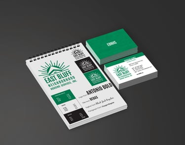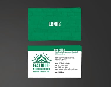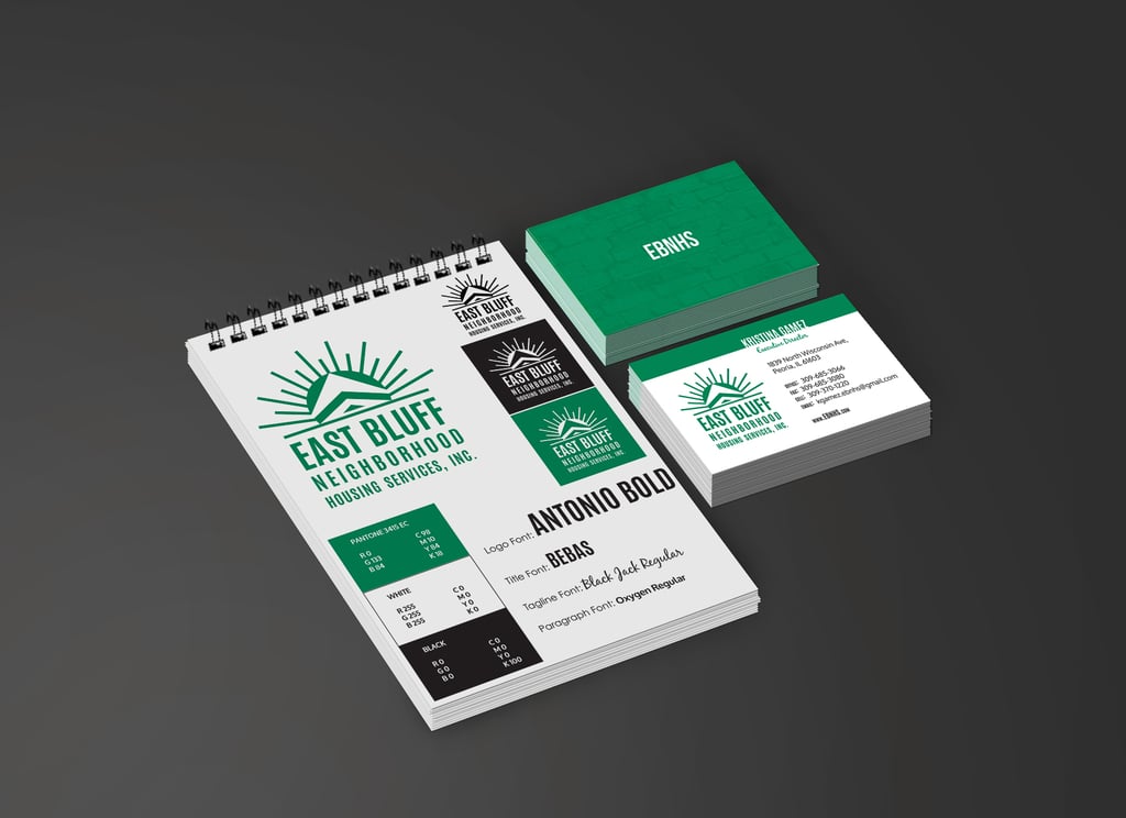 Non-profit East Bluff Neighborhood Housing Services was in the center of the underserved East Bluff of Peoria, IL. The organization had previously taken a poll from the neighborhood children about their favorite part of living in the East Bluff. The one that stood out the most was that the "sun rises on the East Bluff." Wanting to bring more warmth to the area, I chose that as the main inspiration.